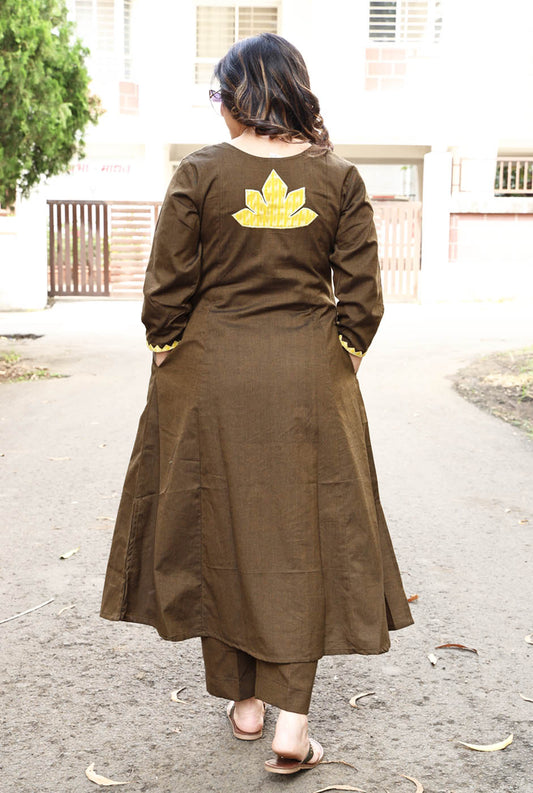 Brown A-Line Kalidar Kurta