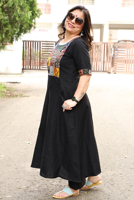 Black A-Line Kalidar Kurta