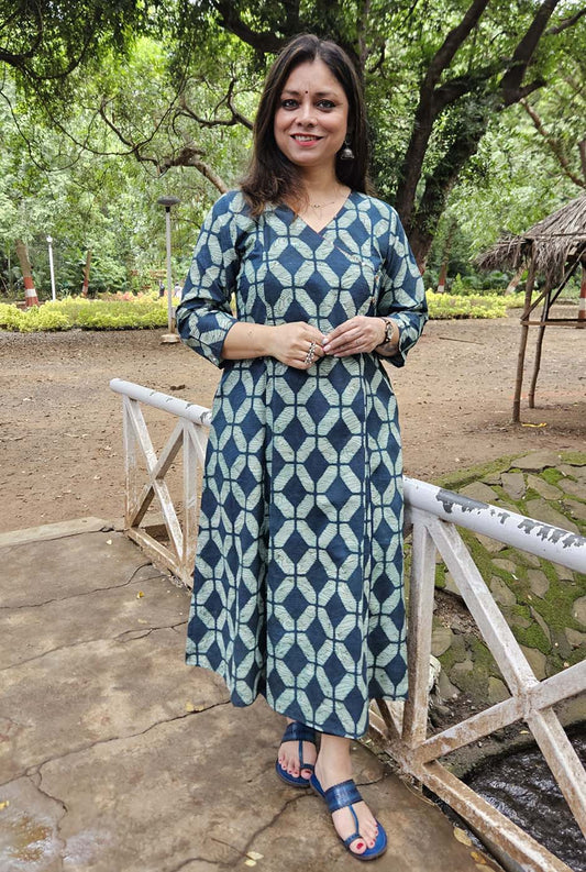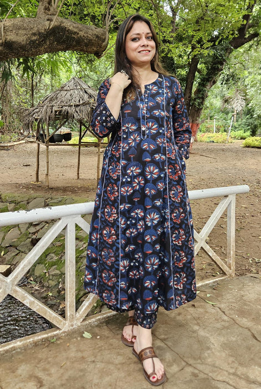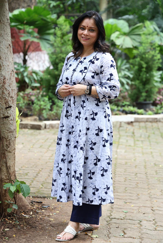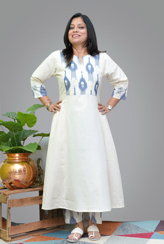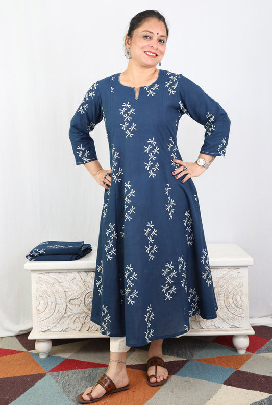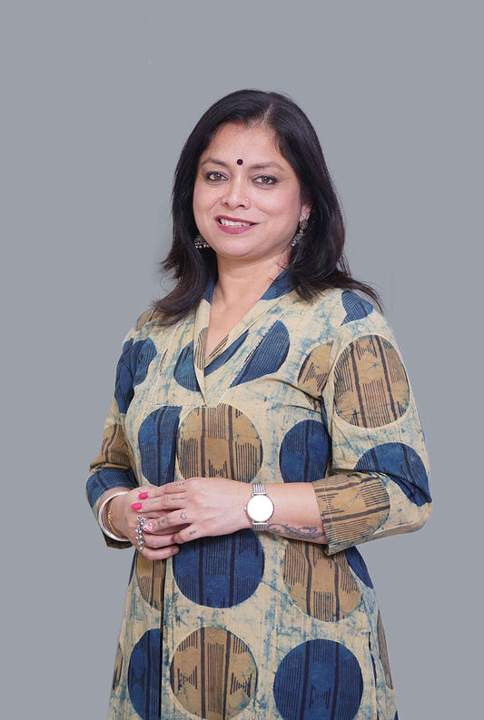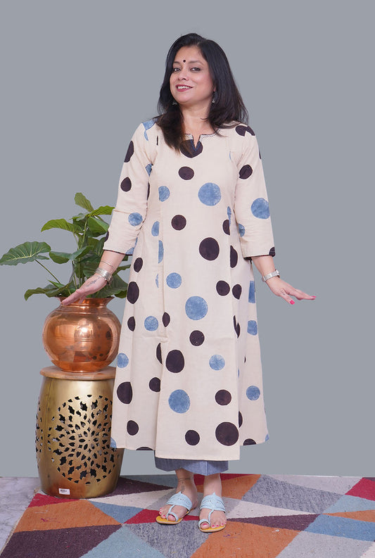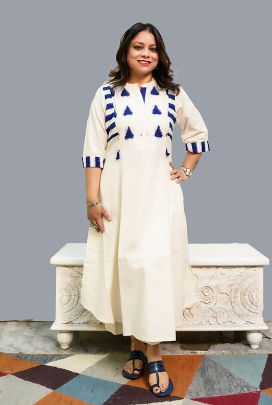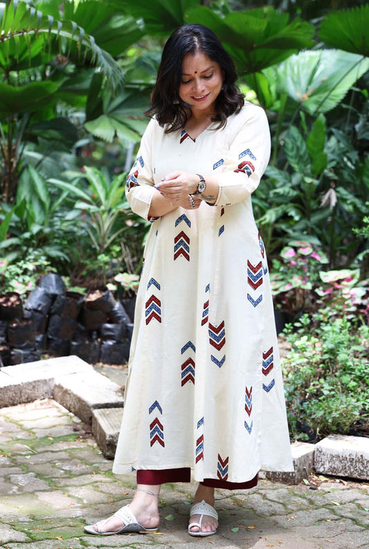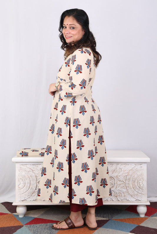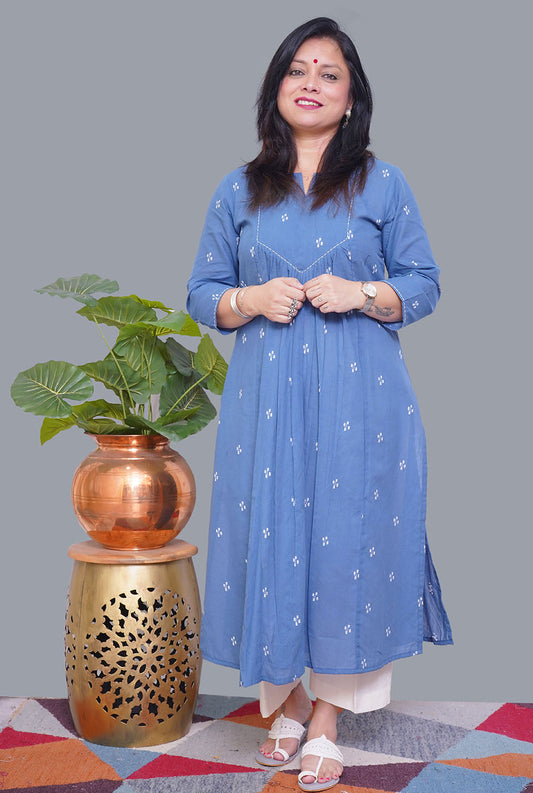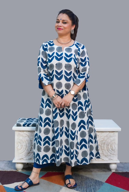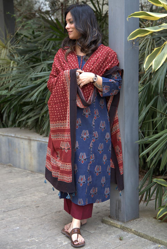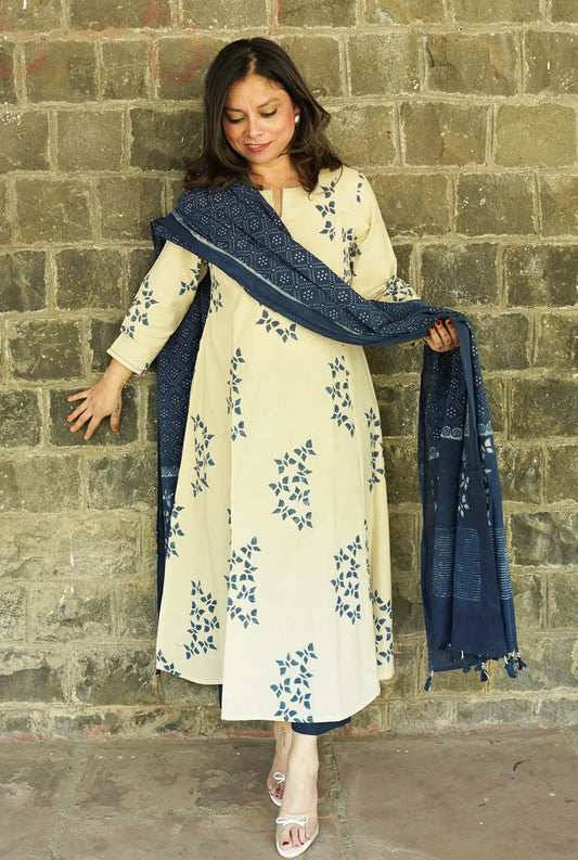 Ivory/Blue Cotton Ajrakh Box Ple...