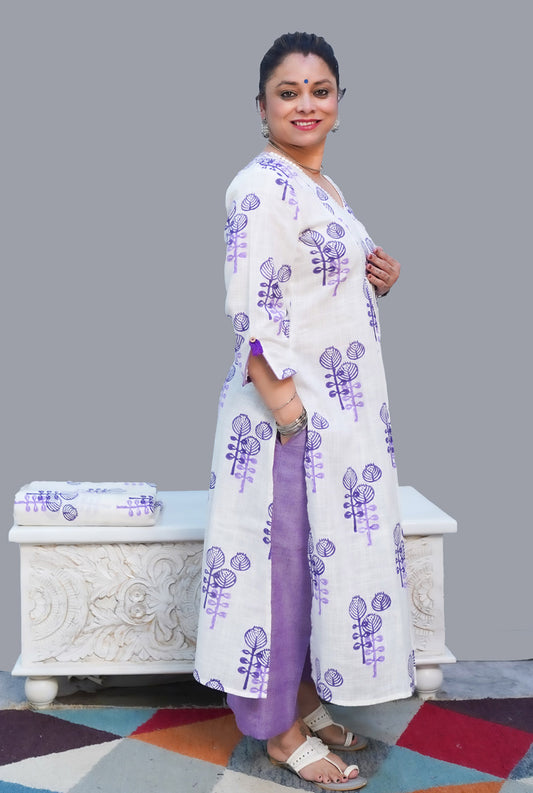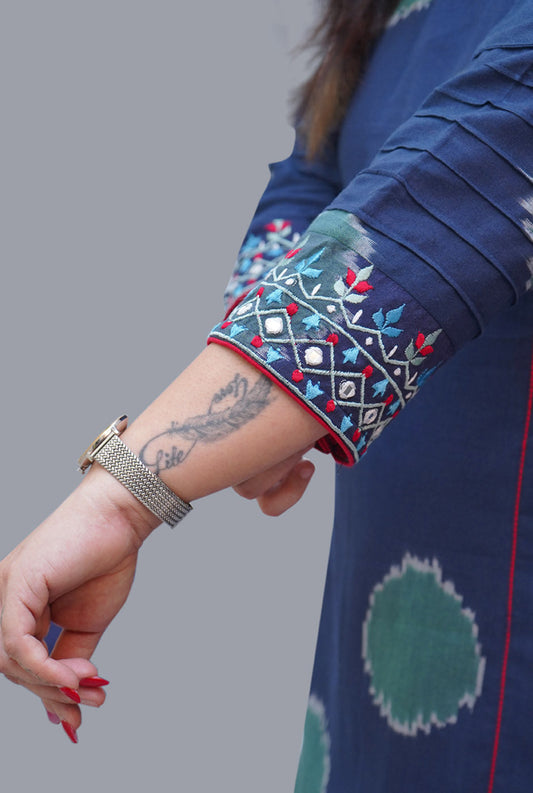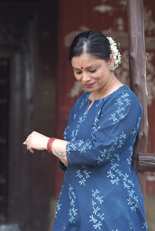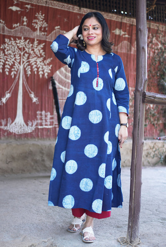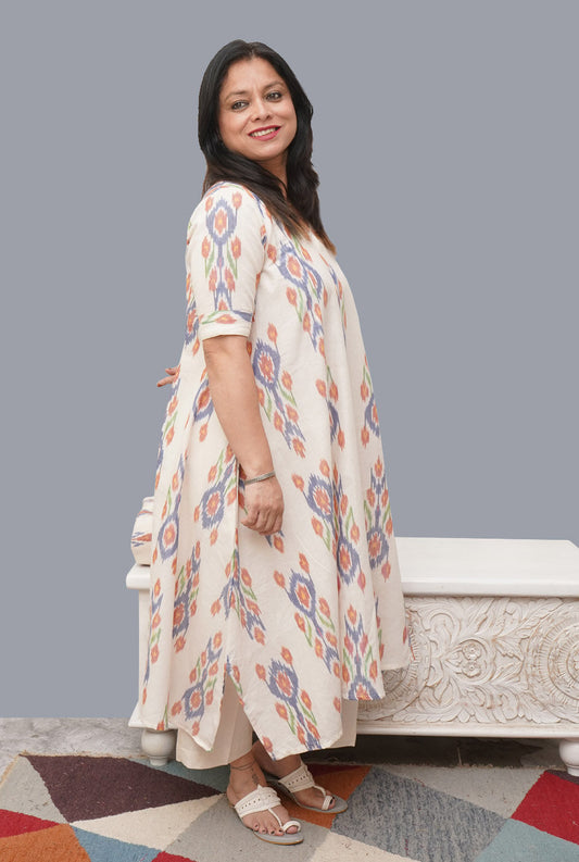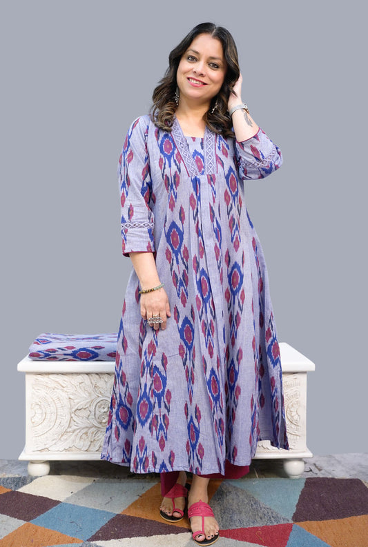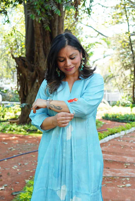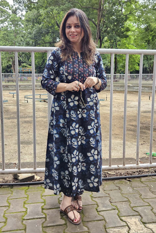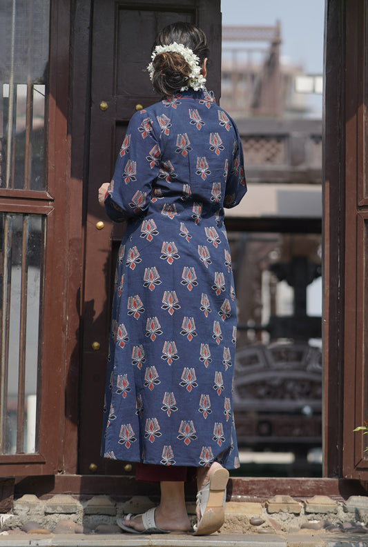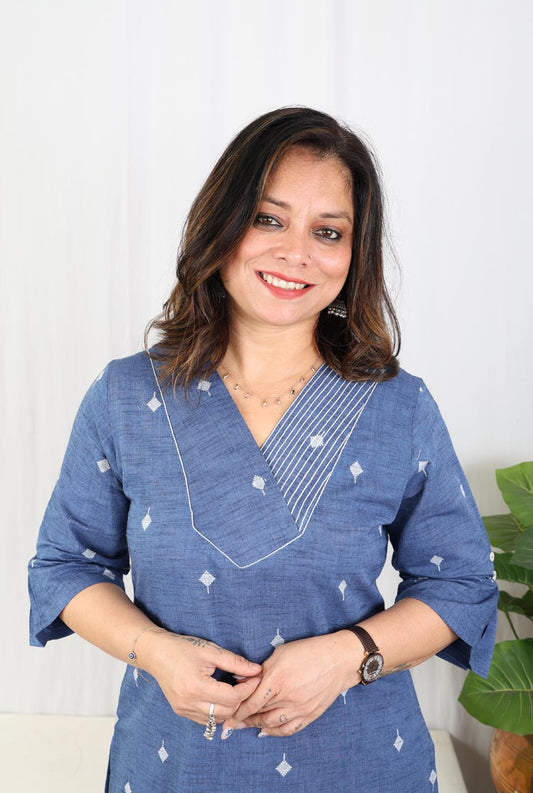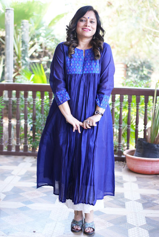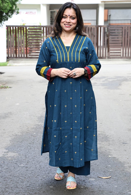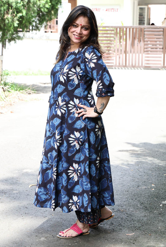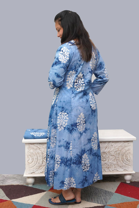 Ivory/Blue Cotton Ajrakh Box Ple...