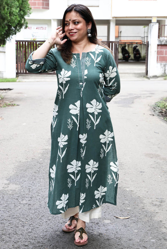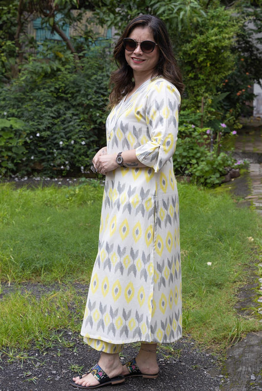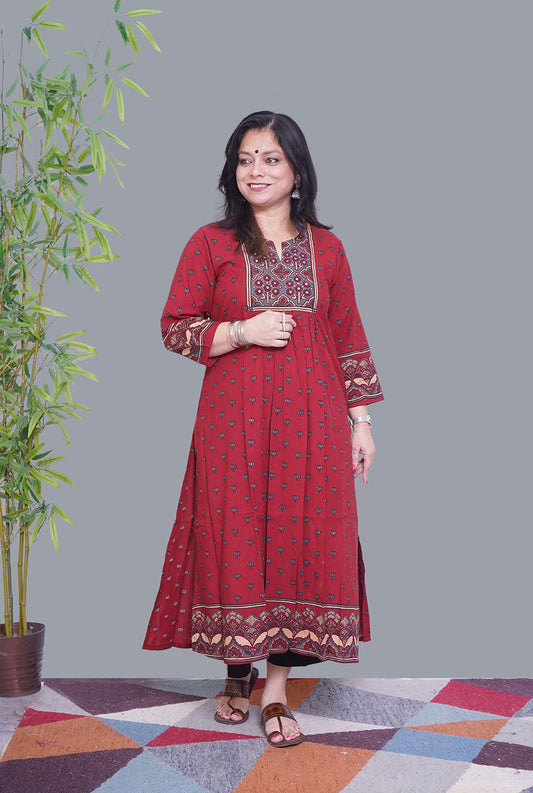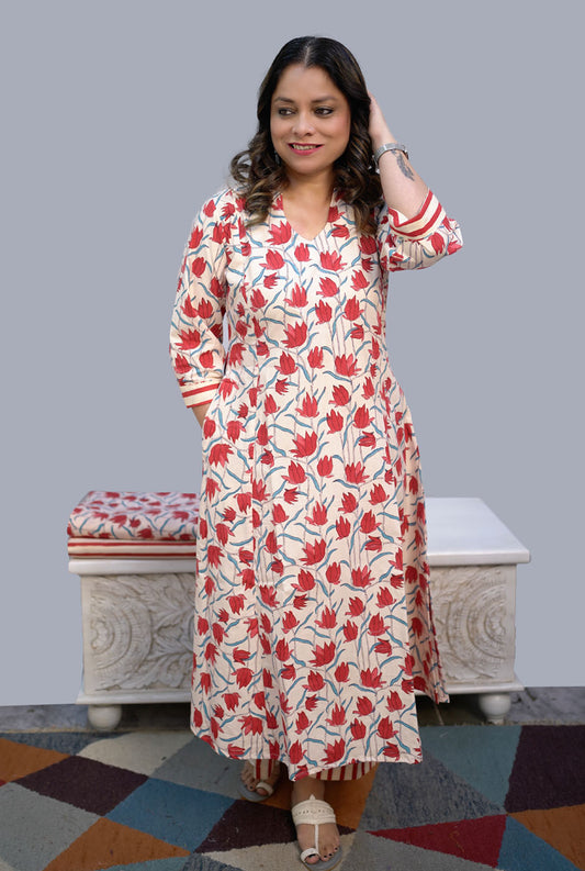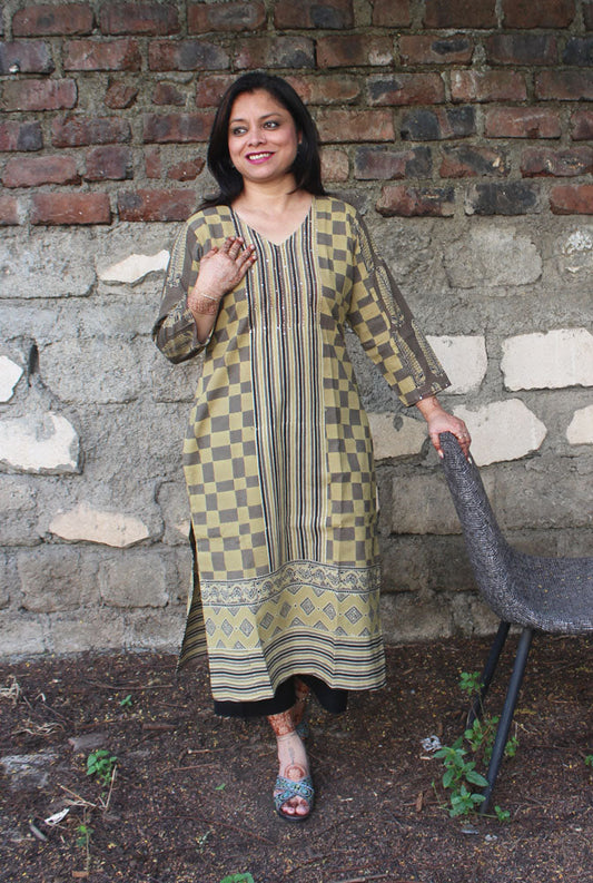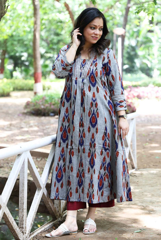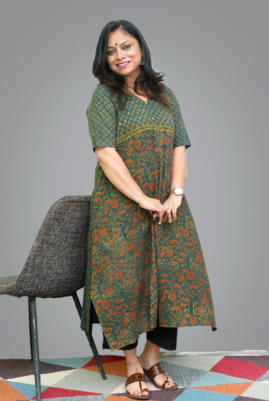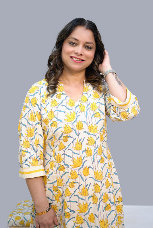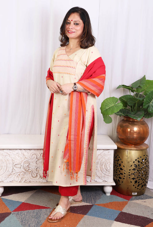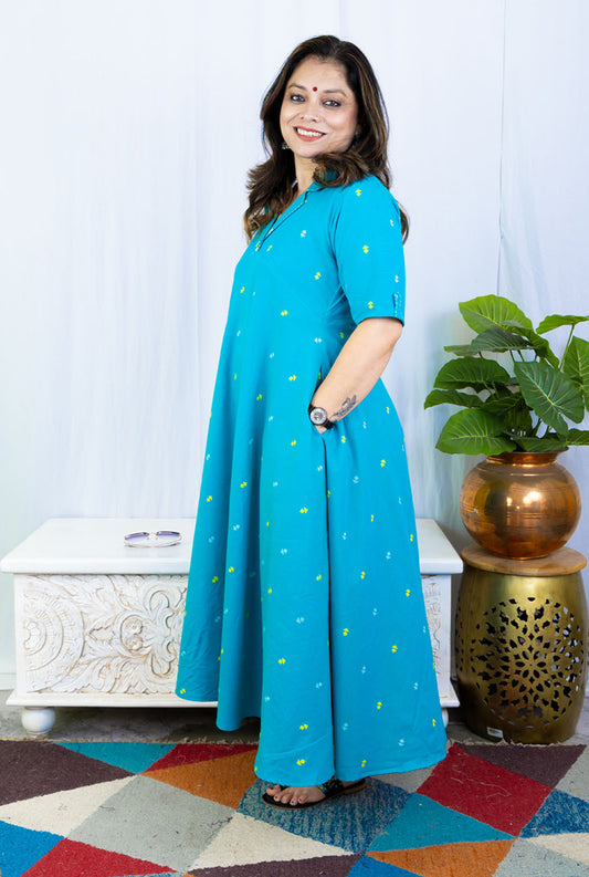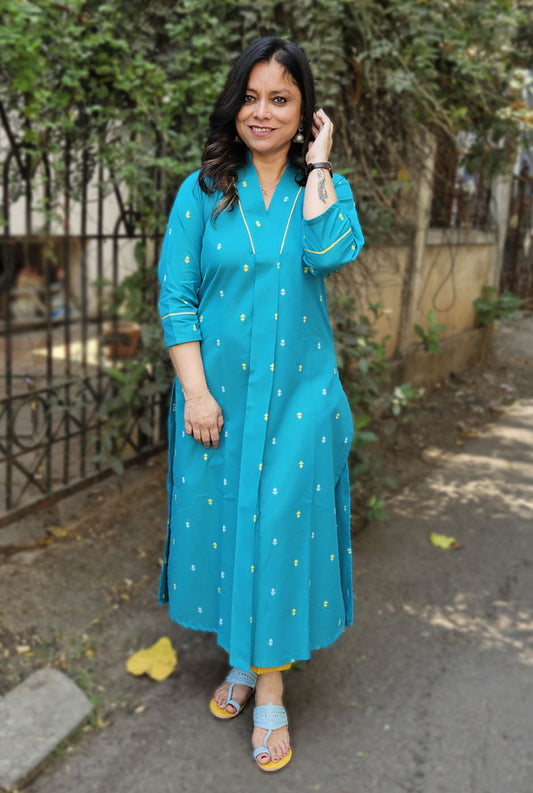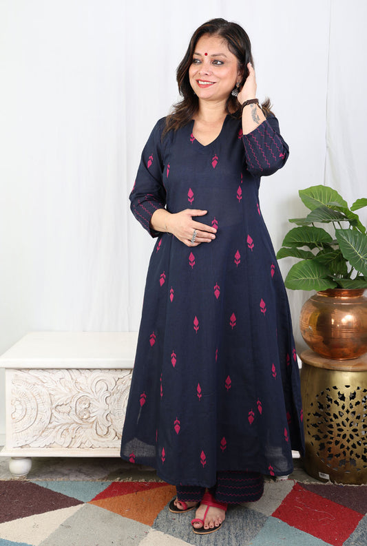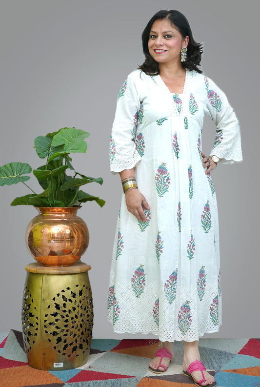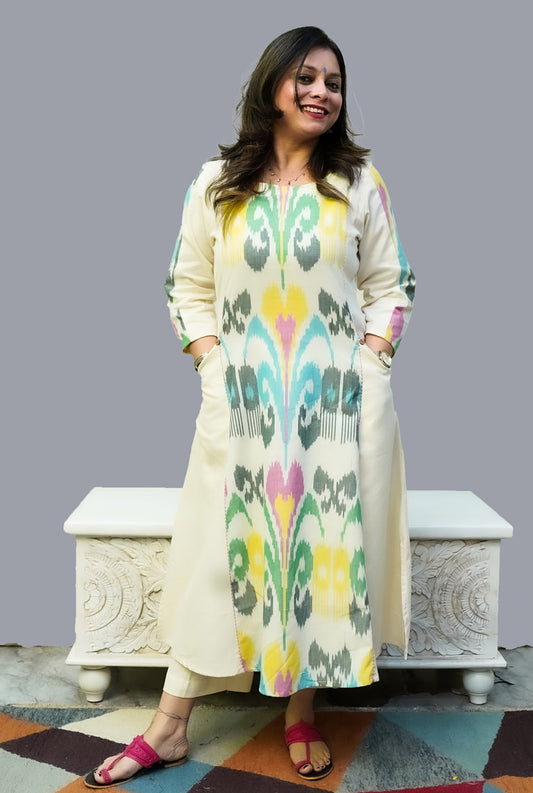 Ivory/Blue Cotton Ajrakh Box Ple...