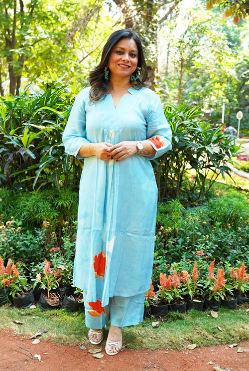 Graceful and refreshing, this Green Gulmohar Kurta Pant Set is crafted for timeless elegance. The soothing green shade beautifully complements the intricate hand embroidery, adding charm and sophistication to your look. Designed with comfort and style in mind, this set pairs a finely tailored kurta with matching pants, making it a perfect choice for festive occasions, family gatherings, or special celebrations.