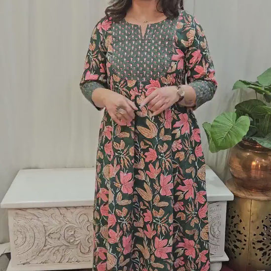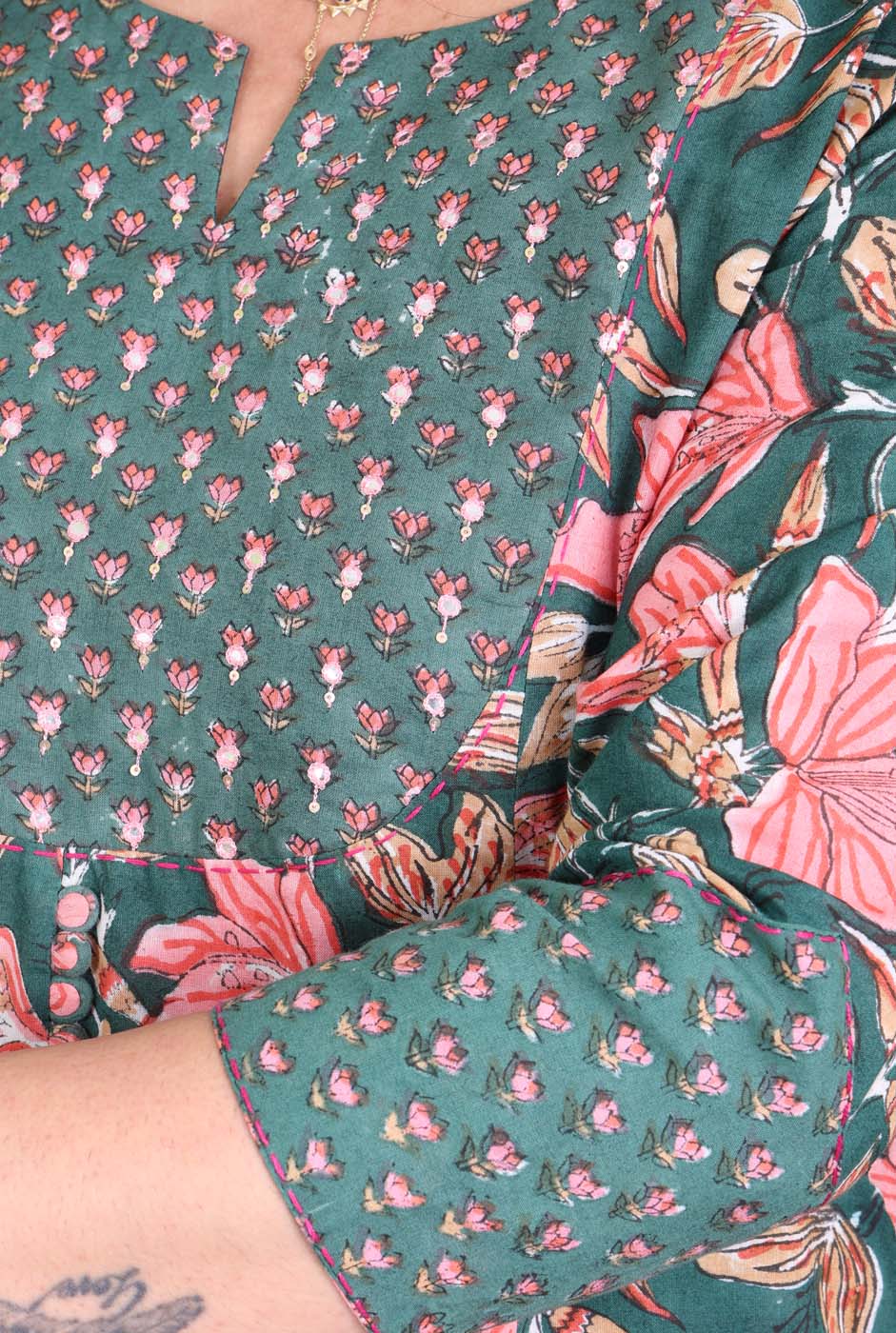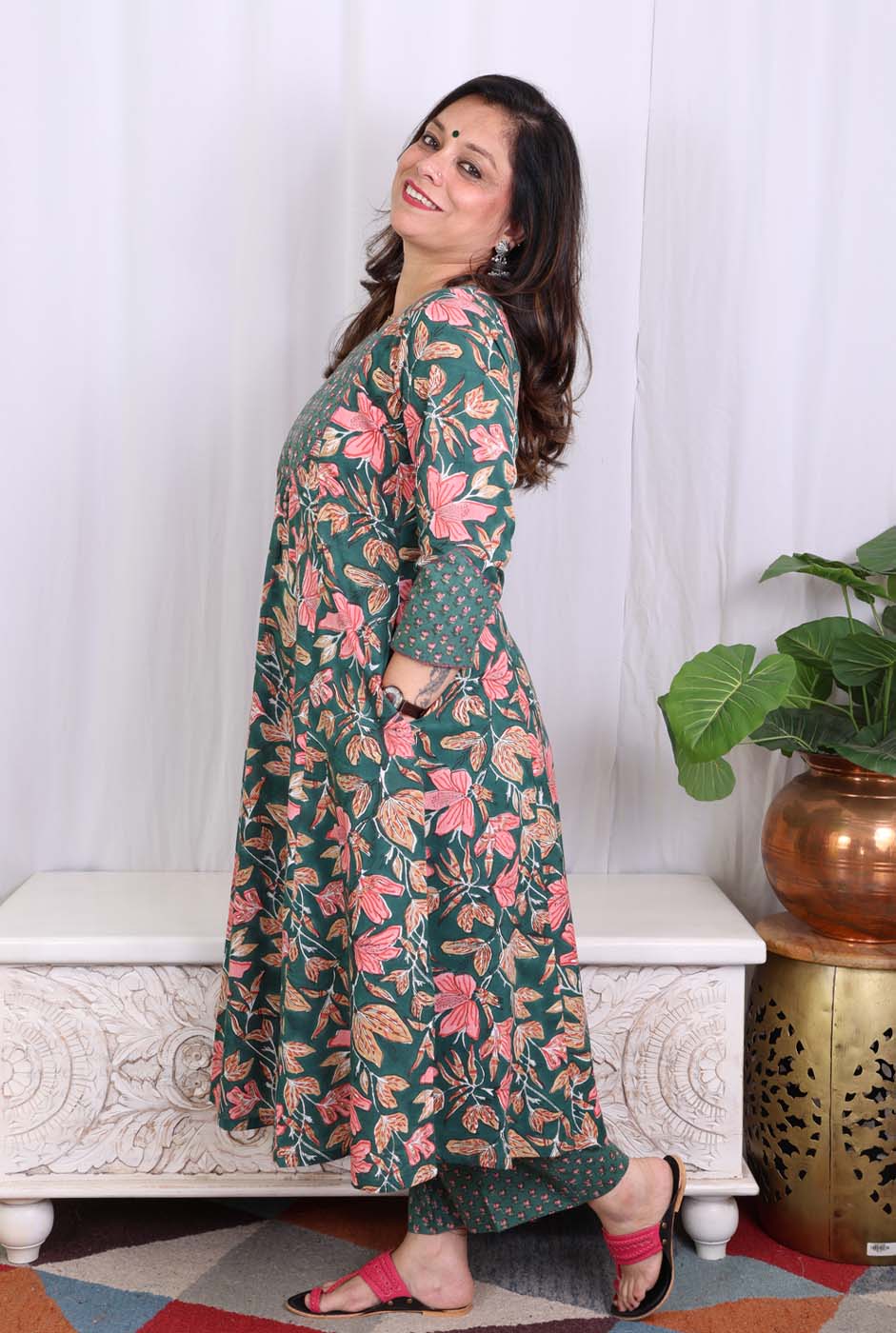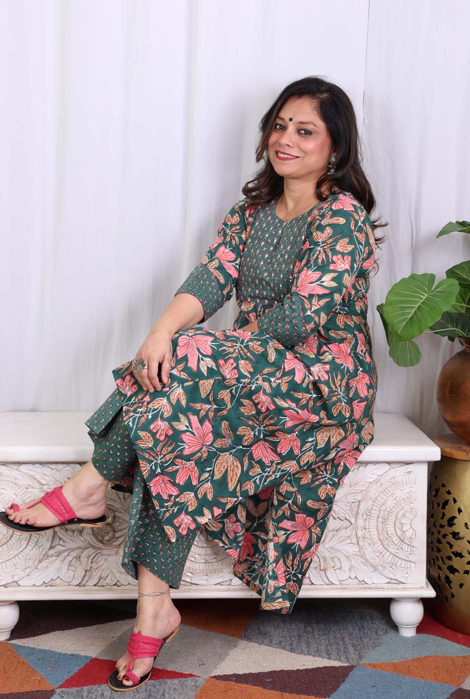 Green Gulmohar Kurta Pant Set with Hand Embroidery