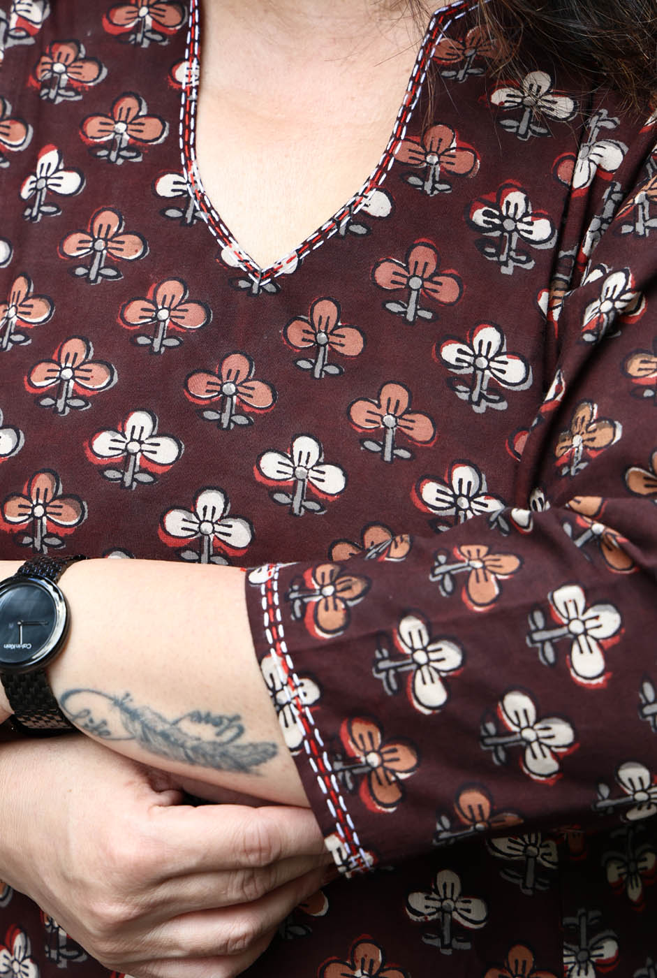 Handcrafted Dabu Cotton Kurta with natural dye block prints. Comfortable, breathable, and stylish — perfect for office wear and casual outings.