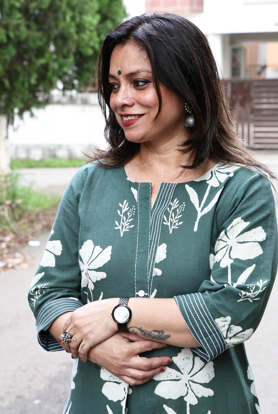 Bring freshness to your wardrobe with our Gulmohar Floral Block Cotton Kurta, crafted from soft handloom cotton. Adorned with delicate floral block prints, this kurta is lightweight, breathable, and perfect for daily wear. The elegant design blends simplicity with charm, making it an ideal pick for office wear, casual outings, or festive gatherings.