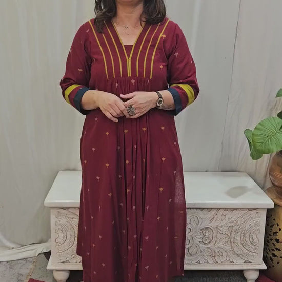I liked the pattern of the dress. Very stylishand good. I have used the handloom materials before also. I found your material thin and the price little high as per the quality of the work. Red colour came as maroon colour.
